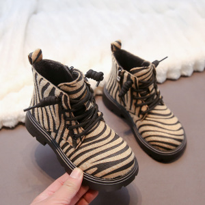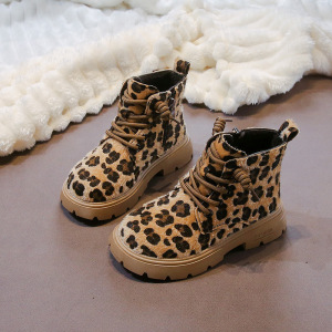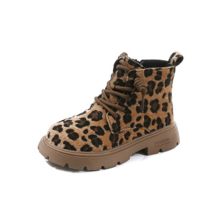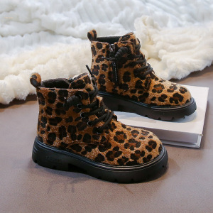 国境を越えた子供の対外貿易ブーツ豹紋靴2024秋冬に綿を入れたファッション英倫風百合気質マーティンブーツ