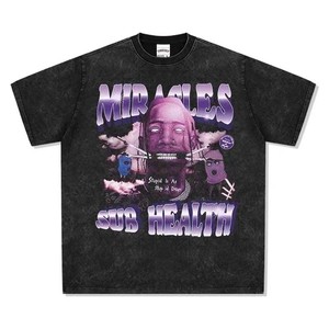 クロスボーダー eBay レトロヒップホッププリント半袖ウォッシュ半袖ルーズラウンドネック Tシャツメンズアマゾン貿易卸売