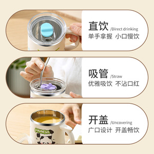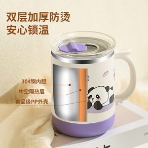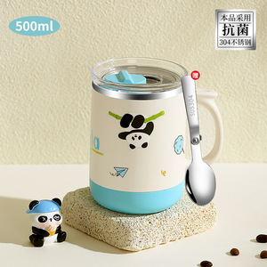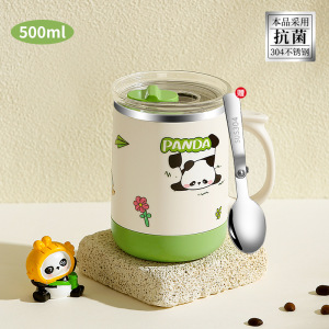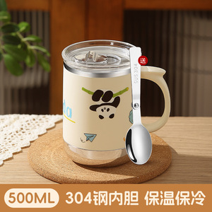 ステンレスオフィス家庭用カップマグカップ蓋付きスプーン付き高颜値カップ保温コーヒーカップコップ