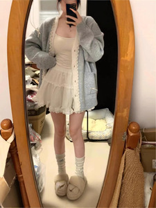 韓系の柔らかいモチモチとした優しい風のvネックのセーターの上着