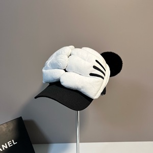 かわいい漫画の立体的な大きな手のひら野球帽女性のための秋と冬暖かいぬいぐるみ耳多用途学生アヒルの舌帽子トレンディ