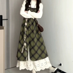 シングルピース/チェック柄サスペンダースカート