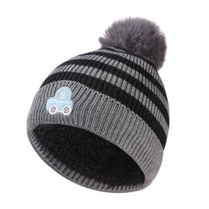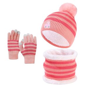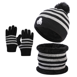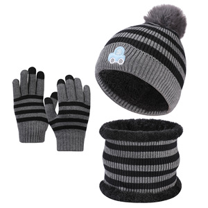 冬の子供の帽子のマフラーの一体の男の子のかわいい小さい車の女の子の保温のぬいぐるみの手袋の3セットの現物