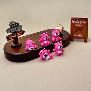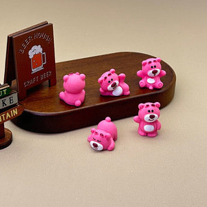 立体アニメいちご熊樹脂部品diyクリームキーホルダー装飾アイデア微景観自動車装飾品