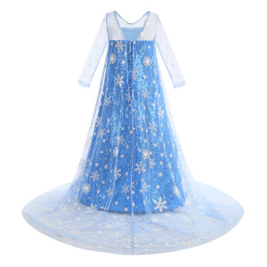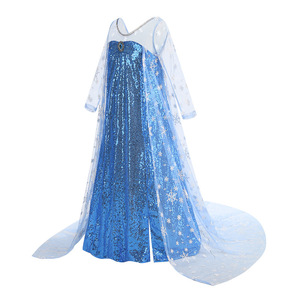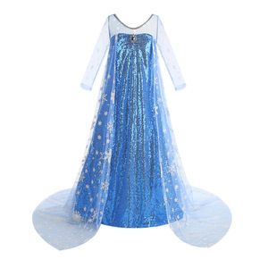 2024アナと雪の女王の女の子の愛莎の王女のスカートのスパンコールの長袖のワンピースの子供の尾の艾莎のドレスのスカート
