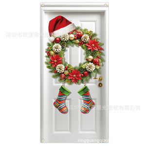 国境を越えたクリスマスの楽しい対聯サンタクロースパーティー庭の屋外ドアカバー装飾180-90cmクリスマスドアカバー
