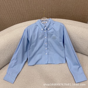24早秋新作学院風韓国版の毛の縁の小さい背の短い純色の長袖のシャツ