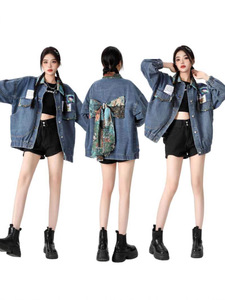 秋冬服の上で新しい文芸の百合のデニムのコートの女性の春秋のデザインの高級感の蝶結びのジャケットの上着のファッション