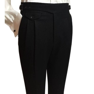 ウールのズボンの男性はまっすぐな筒を巻いてゆったりしています。