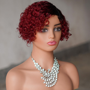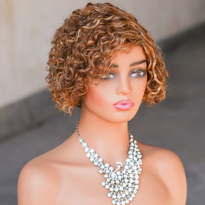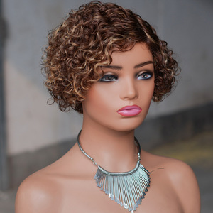さらさらとした対外貿易アフリカの黒人の本物の髪の全メカニズムの偏った小さい巻きのかつらの頭のカバーの多色の8インチの現物