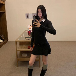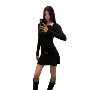 秋冬の気前がいいです。フランス式の黒いワンピースのスカートは2025秋になります。