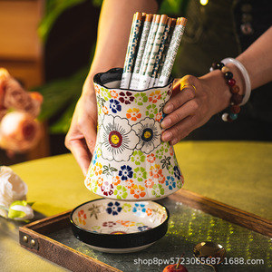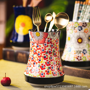 手描きの箸立て、家庭用セラミック排水箸立て、箸かご、キッチン箸立て、ナイフとフォークの収納ボックス、箸かご卸売
