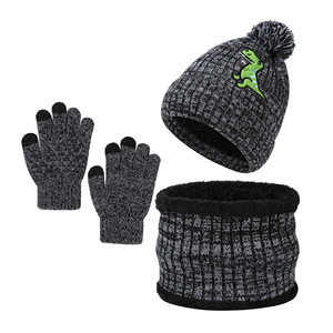 越境児童帽子マフラー手袋3点セット冬赤ちゃん屋外ベルベット保温ニット毛糸帽子スポット