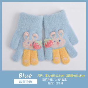 子供の手袋の冬の5本の指の保温の漫画のイチゴのウサギの赤ちゃんのベルベットの指のカバーの男女の子供の外出は厚くて凍ることを防ぎます。