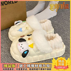 可拆卸棉拖鞋女冬防水居家厚底加绒包跟学生宿舍可爱室内保暖棉鞋
