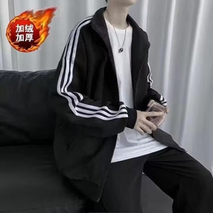 ファッションのファッションブランドの秋冬のベルベットの3つのバーのカーディガンの男性の百合の新型のゆったりしたレジャーのスポーツのコートの男性の服