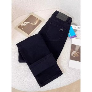 大きいサイズの黒いジーパンの女性の2024秋冬の新型の太ったmmのナシの形の体つきはやせている弾力のまっすぐな筒のパイプのズボンを現します。