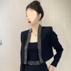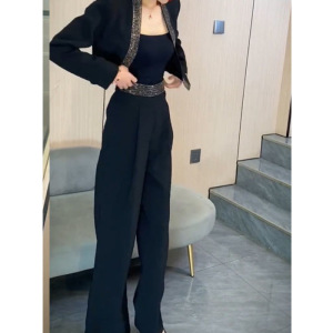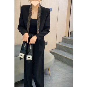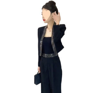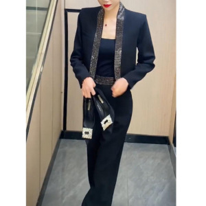 ネットの赤い新型のファッションのスーツの2024秋のフランスの設計感の重工の熱いドリルのスーツはやせているズボンの2つのセットを現します。