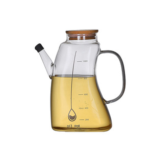ハンドル付き高ホウケイ酸ガラスオイルポットメーカー、家庭用大容量高温耐性ガラスオイルボトル(目盛り付き)