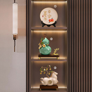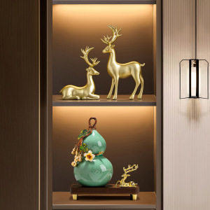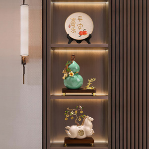 新福禄双全琺瑯彩陶器ひょうたん オフィス高級リビングルーム 財運を呼び込む 新中式 テレビ台・ワインキャビネット装飾