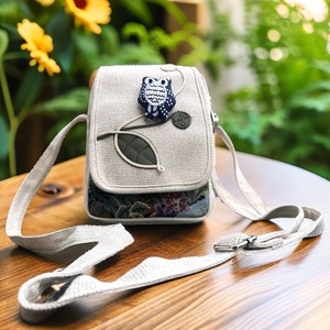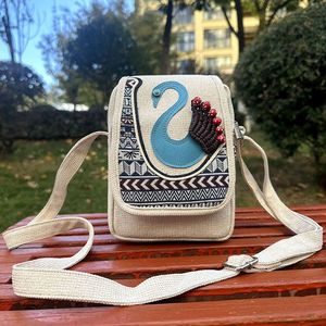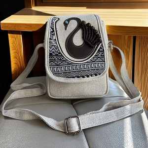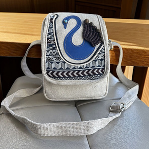 新民族風二重綿麻小包大画面携帯バッグ斜めショルダーバッグ手作りミニカジュアル小銭入れ