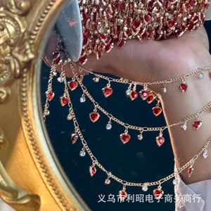 diy链条 红色桃心水钻 暗黑风格diy材料手作链子手链项链服饰配件