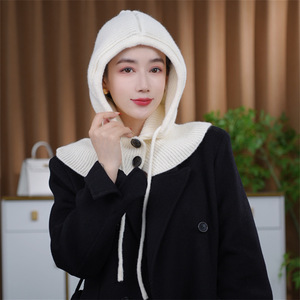 ファッションニット可拉可拉法帽子ボタン付き女性秋冬韓国版保温マフラー耳保護ヘッドキャップ両用