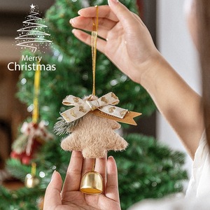 跨境圣诞毛绒装饰圣诞树挂件新年铃铛车挂室内玄关墙挂小礼品挂饰