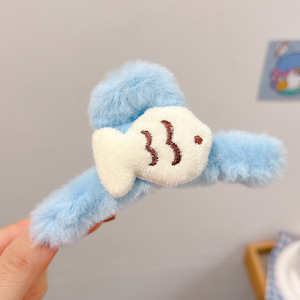秋冬の新型小魚がぬいぐるみを捕まえてかわいい少女の心を飾って子供の後頭部を飾ってサメのクリップを出します。