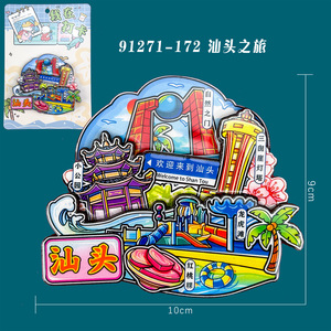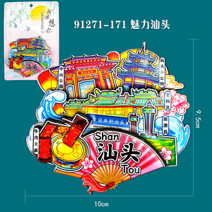 都市ランドマーク潮州木製冷蔵庫貼り文創特色汕頭冷蔵庫貼り広東磁気吸引冷蔵庫貼り卸売り