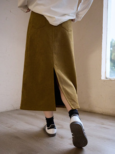無地コーデュロイスカート春秋新作レトロ万能着痩せロングスカートおしゃれハイウエスト後開きAラインスカート
