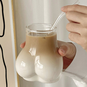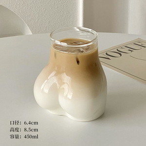 セクシーで可愛いお尻のグラス家庭用アイスドリンクミルクティーカップ創意耐熱ガラスアイスアメリカ風ラテコーヒーカップ