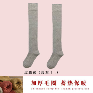 オーバーニーソックス(ライトグレー) - 厚みのあるテリースタイル