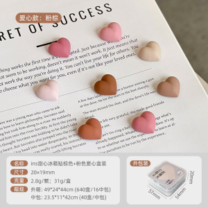 ラブピンクとブラウンのグラデーション冷蔵庫用マグネット 8個(箱入り)