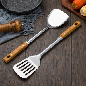 ステンレス鍋シャベル五点セットの長い柄のパーマ防止木の柄の家庭用炒め物のシャベルのスプーンのスプーンの台所用品セット