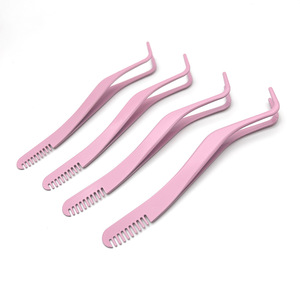 メーカー直供ステンレス櫛クリップまつ毛クリップ眉ピンセット丸頭曲げピンセット櫛付きまつげ接ぎ木ツール
