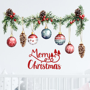 MS-XA185のクリスマスの装飾の松の枝の松の実の色のボールの緑は客間の書斎の壁面の家庭の装飾の壁のステッカーを植えます。