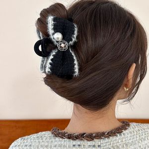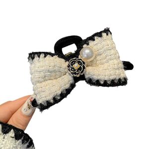 小香風蝶結びヘアクリップ女性秋冬後頭部ヘアグリップサメクリップ復古気質パイル髪飾り