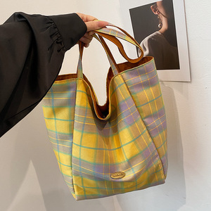 小众设计格纹时尚托特布女包新款大容量腋下单肩包休闲百搭帆布包