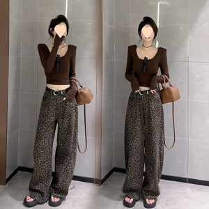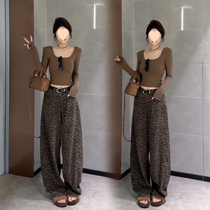 ダークブラウンのトップス+ワイドパンツ【2点セット】
