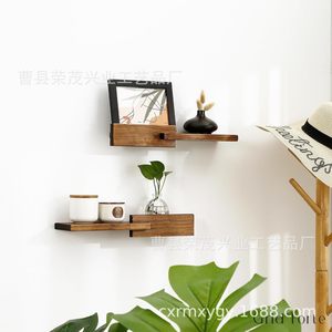 木製の壁の棚の壁掛け式の壁面の台所の一字の仕切り板がぶら下がっています。