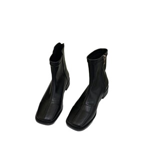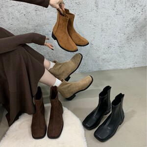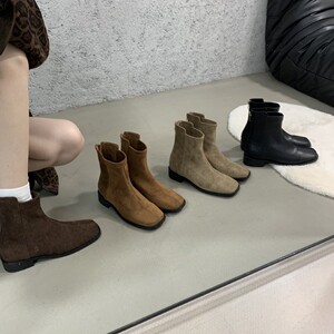 韓国の東大門の中筒靴は柔らかい皮の方頭の平底のショートブーツのやせている靴の太さと単靴の2024秋冬を合わせます。