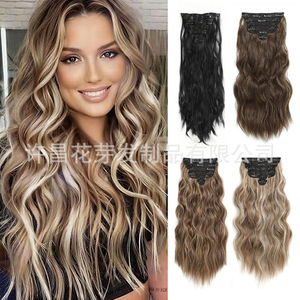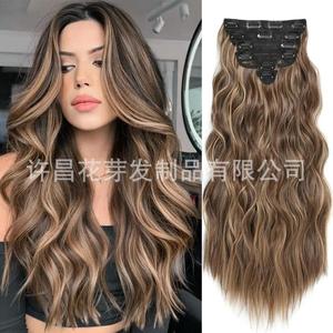 外国貿易の欧米のかつらの女性の化学繊維の7つのセットのカードの髪の高温の糸の水の波紋のかつらの長い髪の卸売りの現物