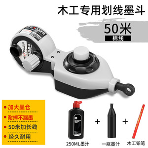 50m 綿糸 - プログレードの手巻きインク壺 + 小さなインク + 大工鉛筆