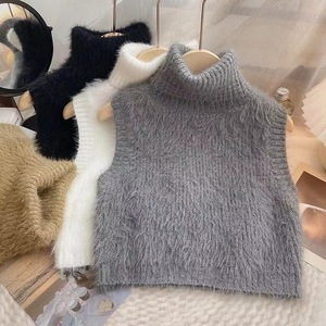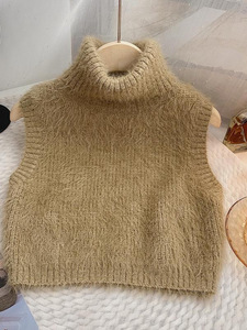 洋気名媛気質毛のふわふわした高襟のノースリーブのセーターの中にニットのベストを掛けます。