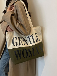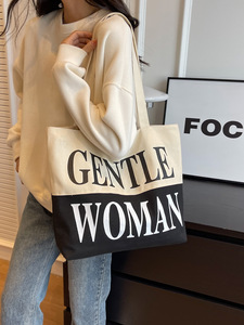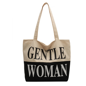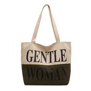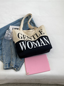 日本のキャンバスバッグの大容量の女性のアルファベットのカジュアルな手提げ袋の学生の授業に参加します。