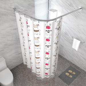 シャワーカーテン穴を開けない浴室アーチ型ロッドシャワードアカーテントイレ入浴遮断防水布l型仕切りカーテン