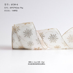 オフホワイトのシャンパンピンクのスノーフレークリボン#6 6.3*10ヤード