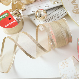 新しいクリスマス装飾品merrychristmasリボンシャンパン色の高級ベルベット箔押しリボン