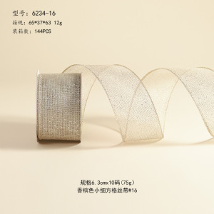 シャンパンカラーの細チェックリボン(オーバーコート)#16 6.3*10ヤード